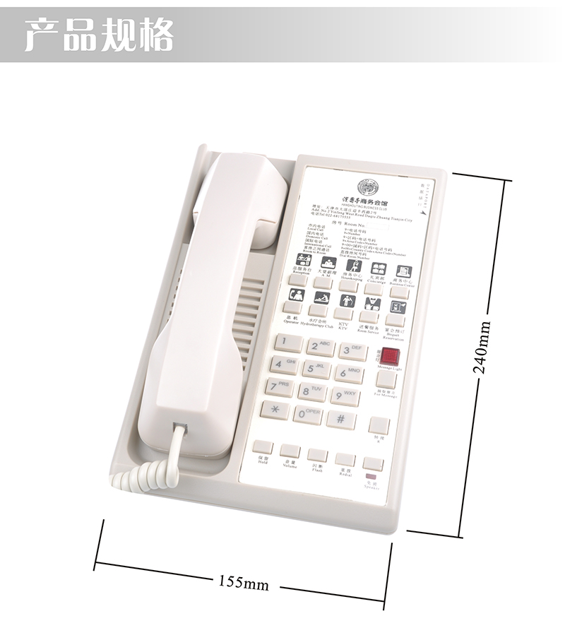 3、留言指示灯,适用世界及国内知名品牌交换机,且直接触摸既可提取留言,方便客人查阅信息